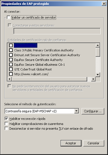 Los siguientes pantallazos explican como configurar un cliente con Windows para autenticar con EAP contra un servidor RADIUS.