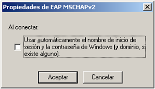 5. Finalmente si tenemos el portátil unido a un dominio podemos que coja los parámetros de inicio sesión para autenticarse en la red inalámbrica. En caso de no marcar el checkbox nos pedirá cada vez que nos conectemos un usuario y contraseña.
